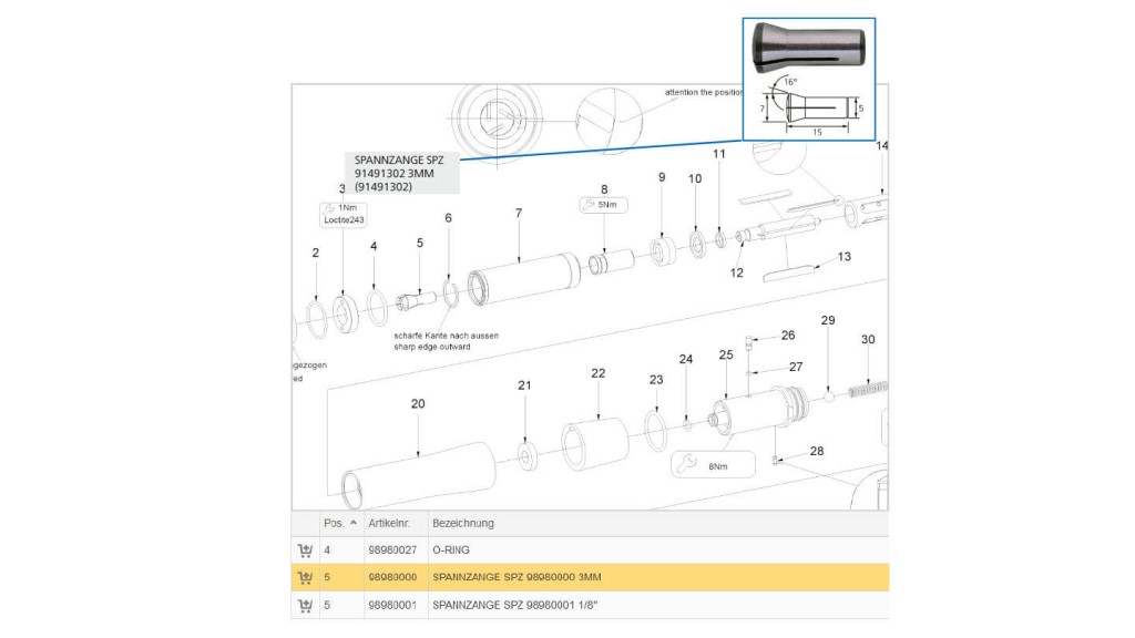 Maschinen können in unserem Hause gewartet werden oder auch teilweise von Ihnen persönlich repariert werden. Um das entsprechende Ersatzteil zu finden, haben wir einen separaten Ersatzteilkatalog für Sie vorbereitet. Hier finden Sie nicht nur Explosionszeichnungen mit allen Ersatzteilen, auch Sicherheitsanweisungen können heruntergeladen werden.