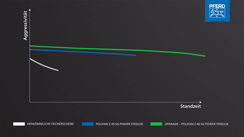 Bei Hochleistungswerkzeugen in puncto Standzeit nimmt die leistungsstarke Fächerscheibe POLIFAN Z 40 SG POWER STEELOX von PFERD TOOLS einen Spitzenplatz ein: