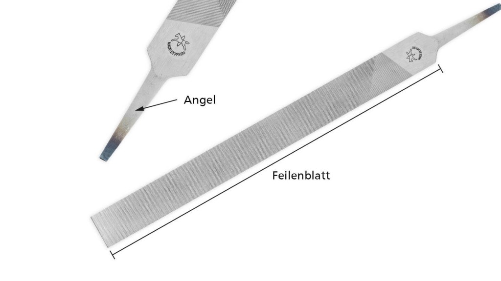 Auf dem Feilenblatt wird der Hieb oder die Zahnung aufgebracht, wodurch der spätere Einsatzzweck bestimmt wird. Die Angel dient der Aufnahme von Feilenheften. Gelegentlich kann auch ein Griff die Angel ersetzen.