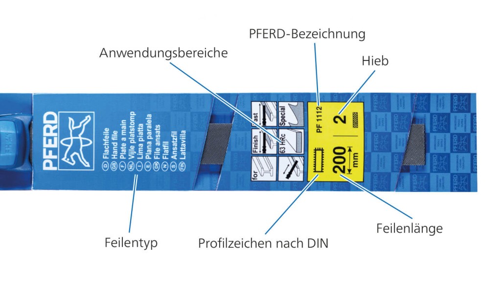 Auf den speziellen Point-of-Sale-Verpackungen von PFERD TOOLS finden Sie alle wichtigen Informationen zu Ihrem Feilwerkzeug: